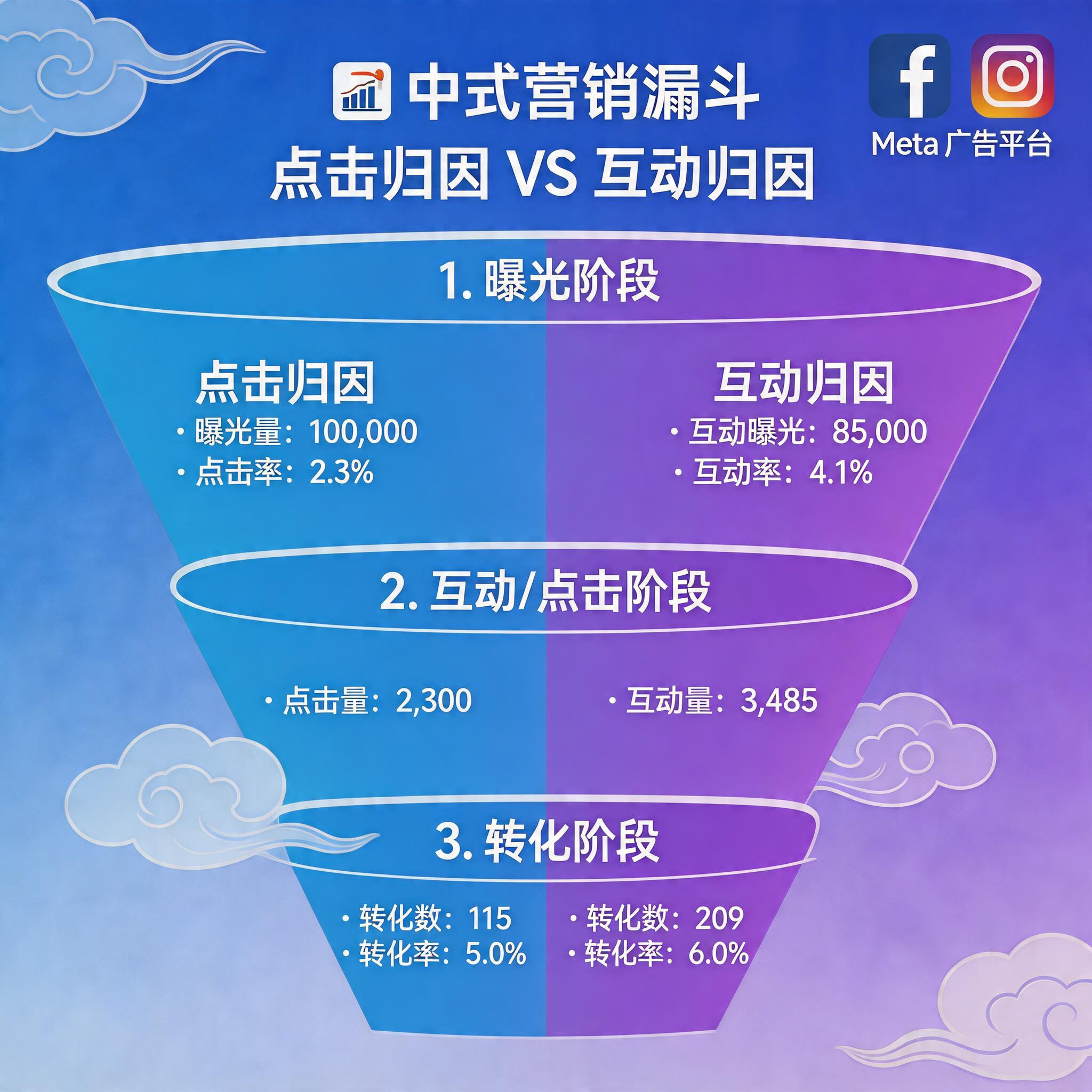 第一步:建立你自己的转换因子。 调取过去 90 天 Click-through CPA,计算同等周期在 Engage-through 口径下的 CPA 数值。两者的比值就是你的”转化膨胀系数”——通常在 1.1x 到 1.3x 之间,取决于你的创意格式结构。
